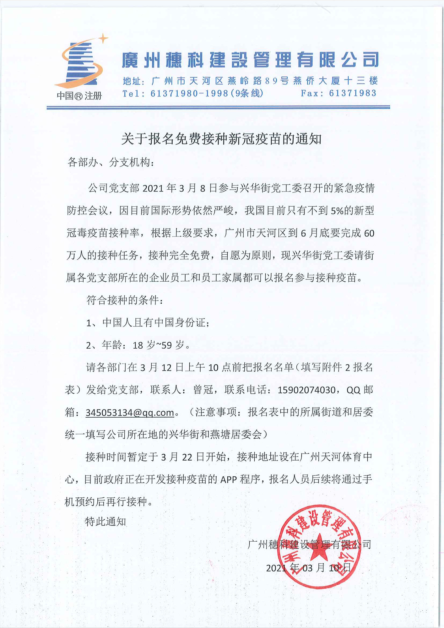 關(guān)于報(bào)名免費(fèi)接種新冠疫苗的通知