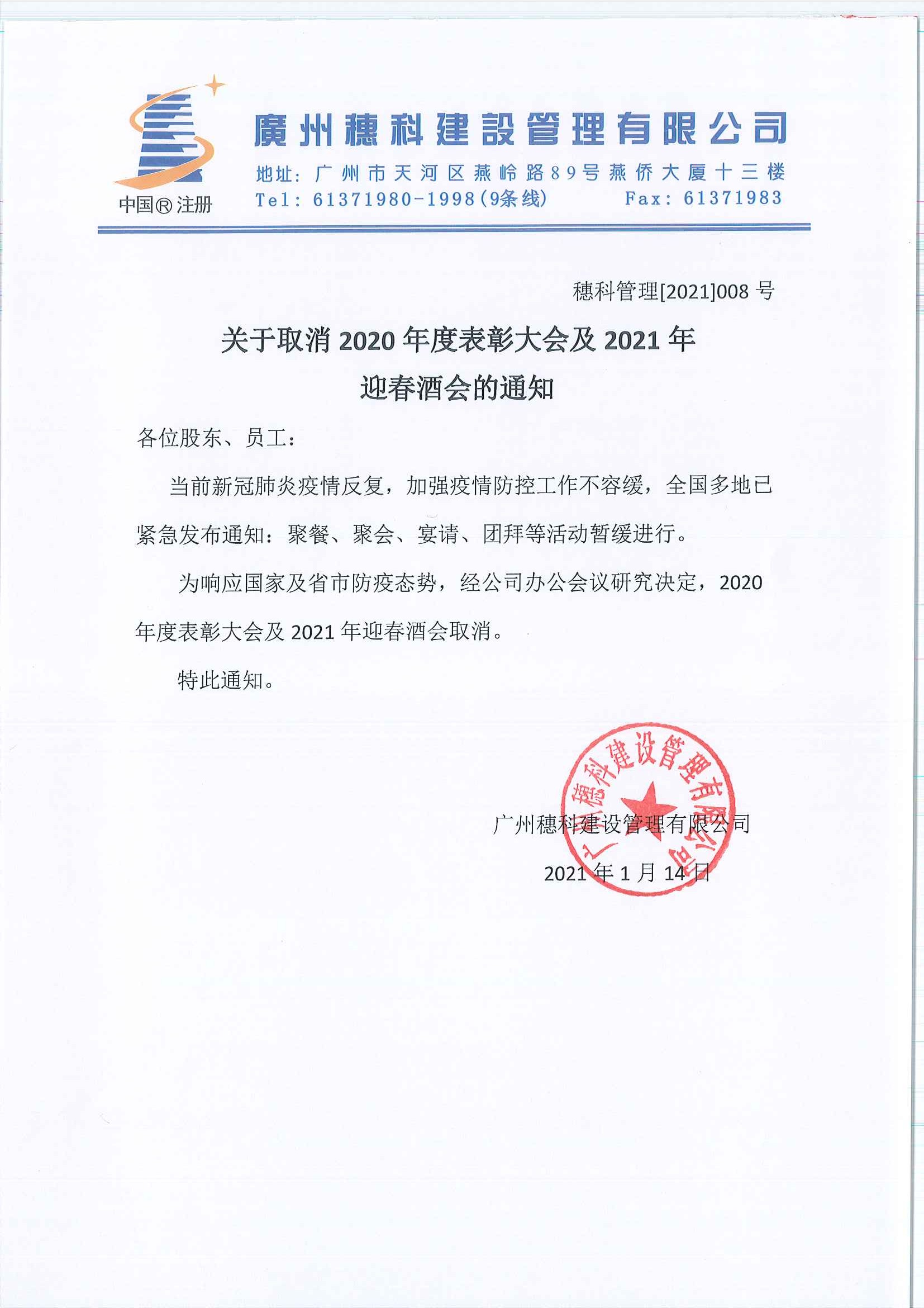 關(guān)于取消2020年度表彰大會(huì)及2021年迎春酒會(huì)的通知
