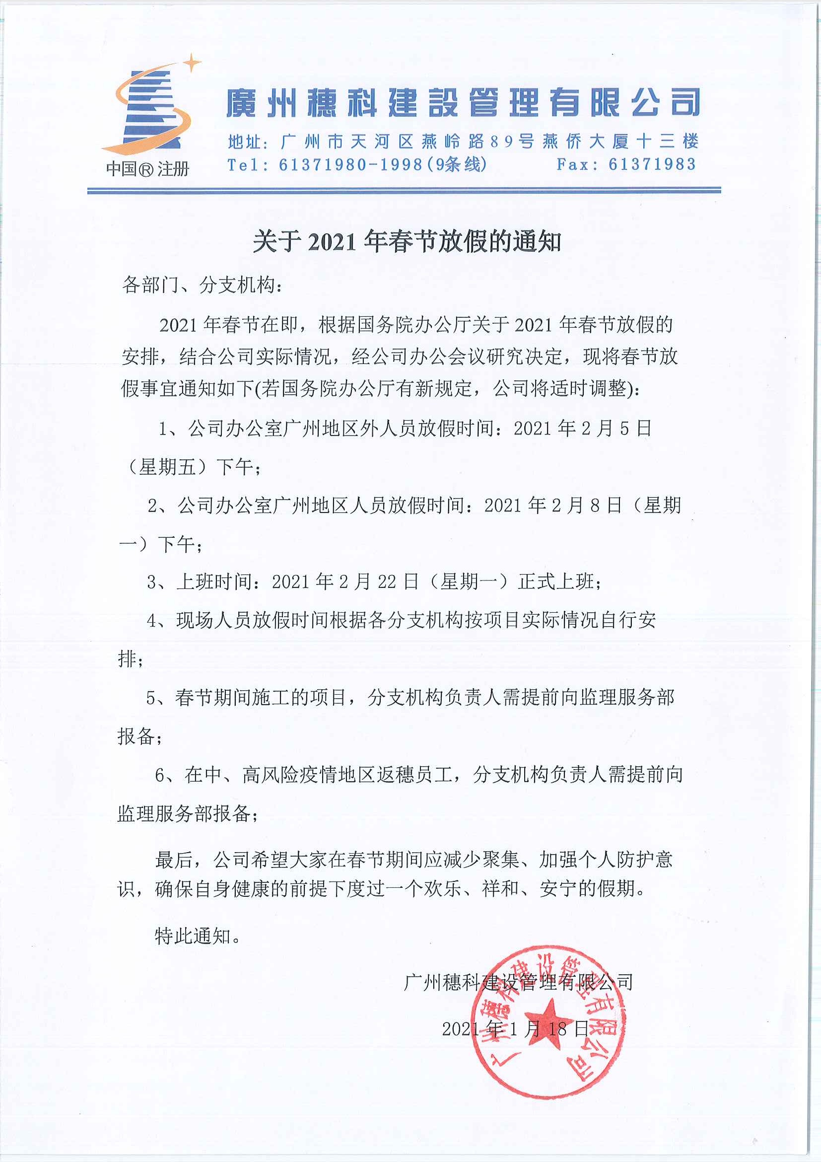 關于2021年春節(jié)放假的通知